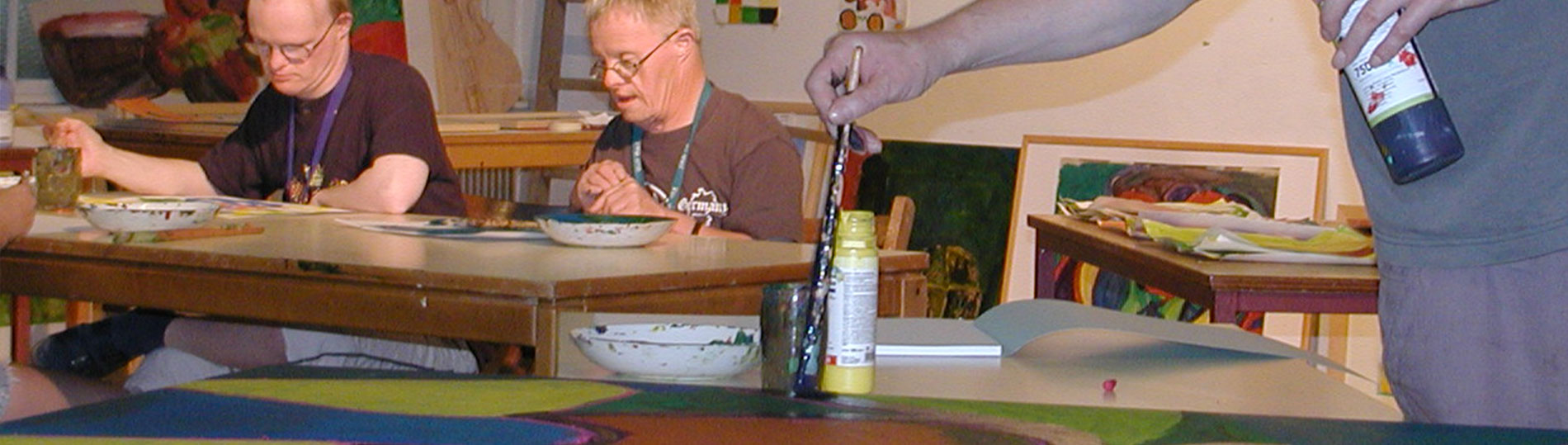 Seit 1998 können Menschen mit einer Behinderung unter Anleitung von Wolfgang Sautermeister in ihrer Freizeit (Dienstagabends) oder auch begleitend zu ihrer Arbeit in einer Tagesgruppe kreativ arbeiten.
