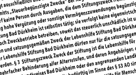 Die Lebenshilfe Stiftung hat sich seit ihrer Gründung im Jahre 2004 zu einer stabilen Finanzsäule entwickelt. Sie stärkt die Arbeit des Vereins, als Träger aller Einrichtungen und Dienste der Lebenshilfe Bad Dürkheim dauerhaft und zuverlässig.